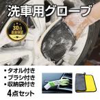 洗車グローブ グッズ 車 手袋 お得4点セット タオル ブラシ 手洗い マイクロファイバー スポンジ
